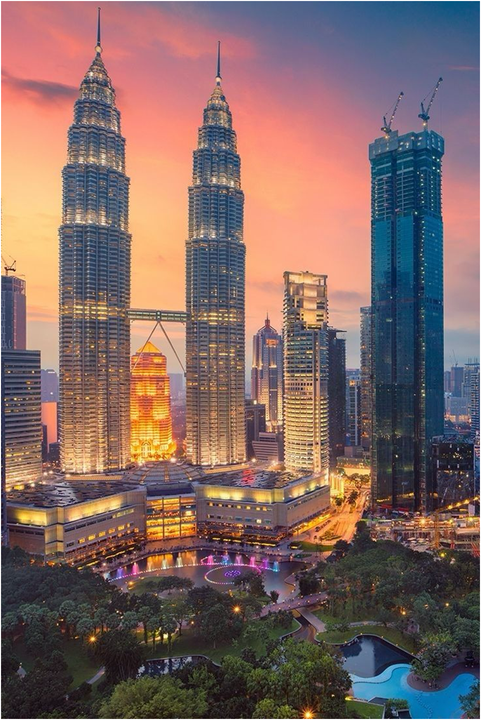 Kuala Lumpur -The capital city, famous for the Petronas Twin Towers, Batu Caves, bustling Bukit Bintang shopping district, and vibrant street food scenes.
