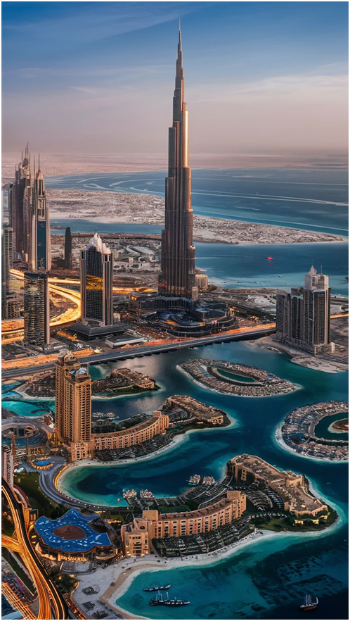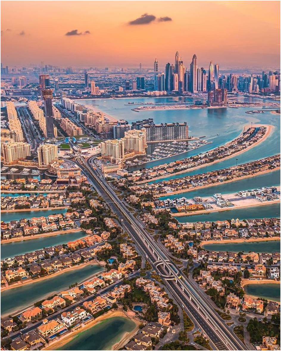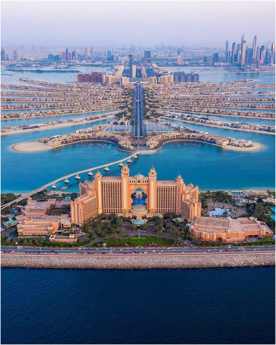 Palm Jumeirah – Man-made island shaped like a palm tree, home to luxury resorts like Atlantis The Palm.