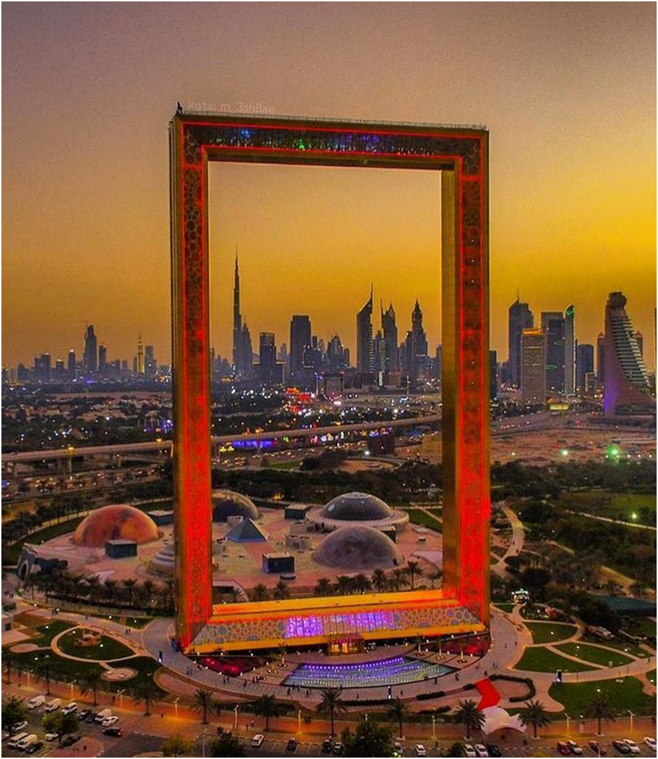 Dubai Frame – A huge picture-frame-shaped structure offering panoramic views of old and new Dubai.